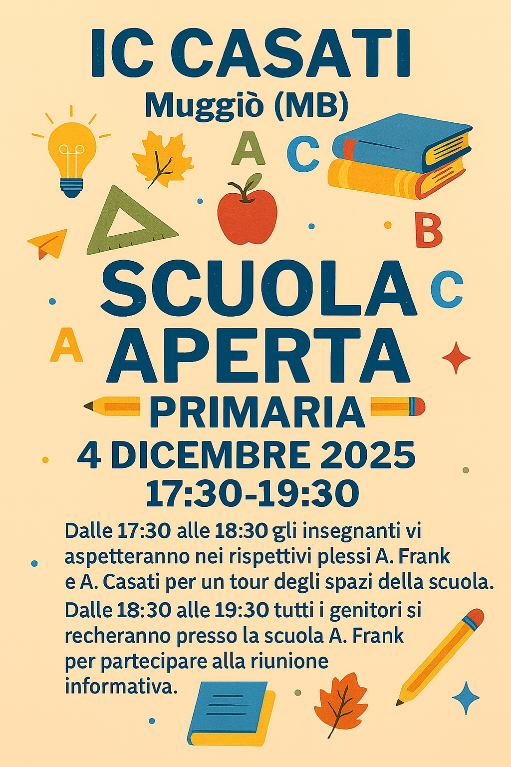 Gli Istituti Comprensivi “A. Casati” e “S. D’Acquisto” organizzano Open Day rivolti ai genitori degli alunni futuri iscritti alle scuole dell’Infanzia, Primarie e Secondarie di primo grado.