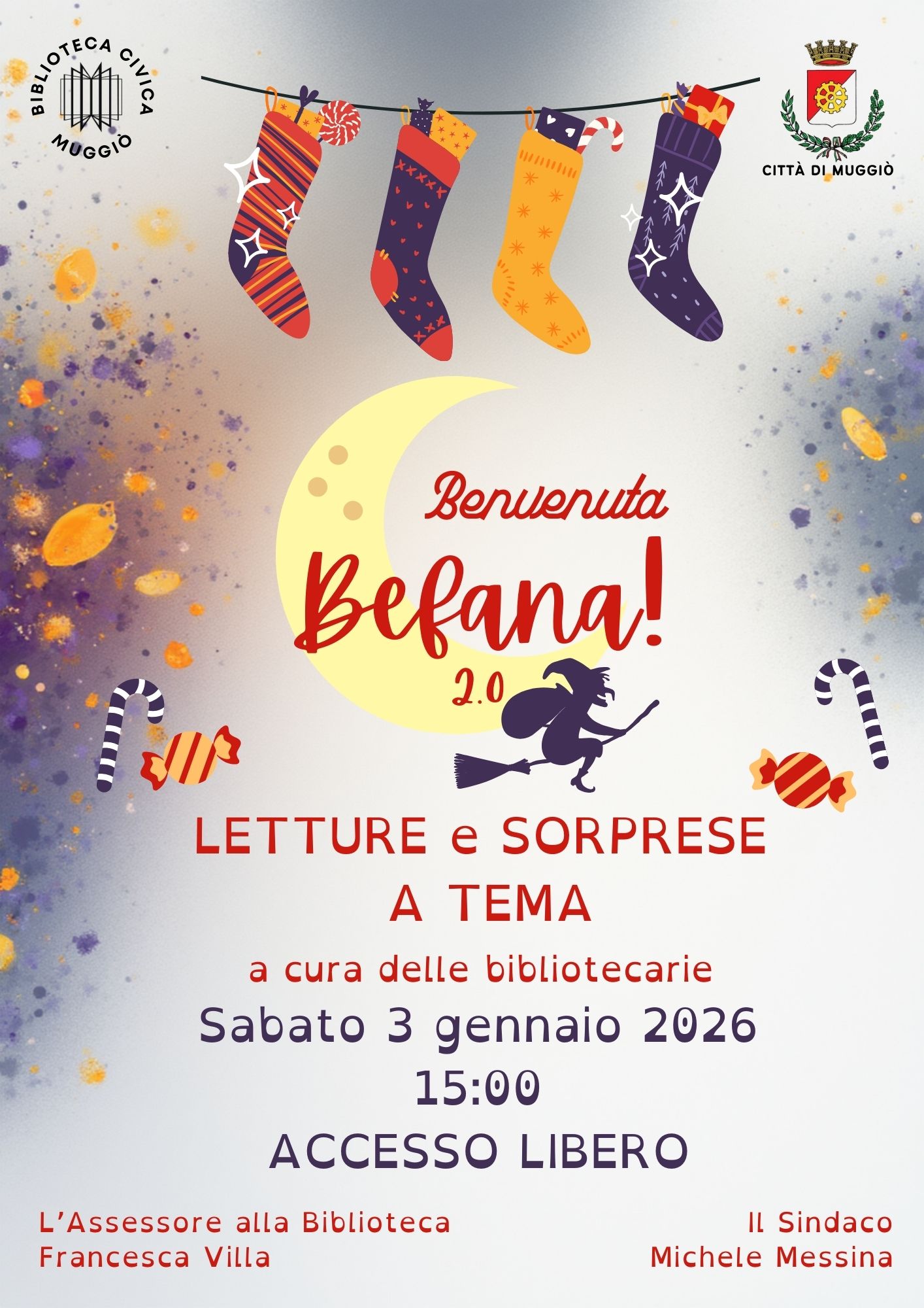 Sabato 3 gennaio 2026, alle ore 15, vi aspettiamo per un pomeriggio speciale dedicato alla Befana e alle sue avventure.