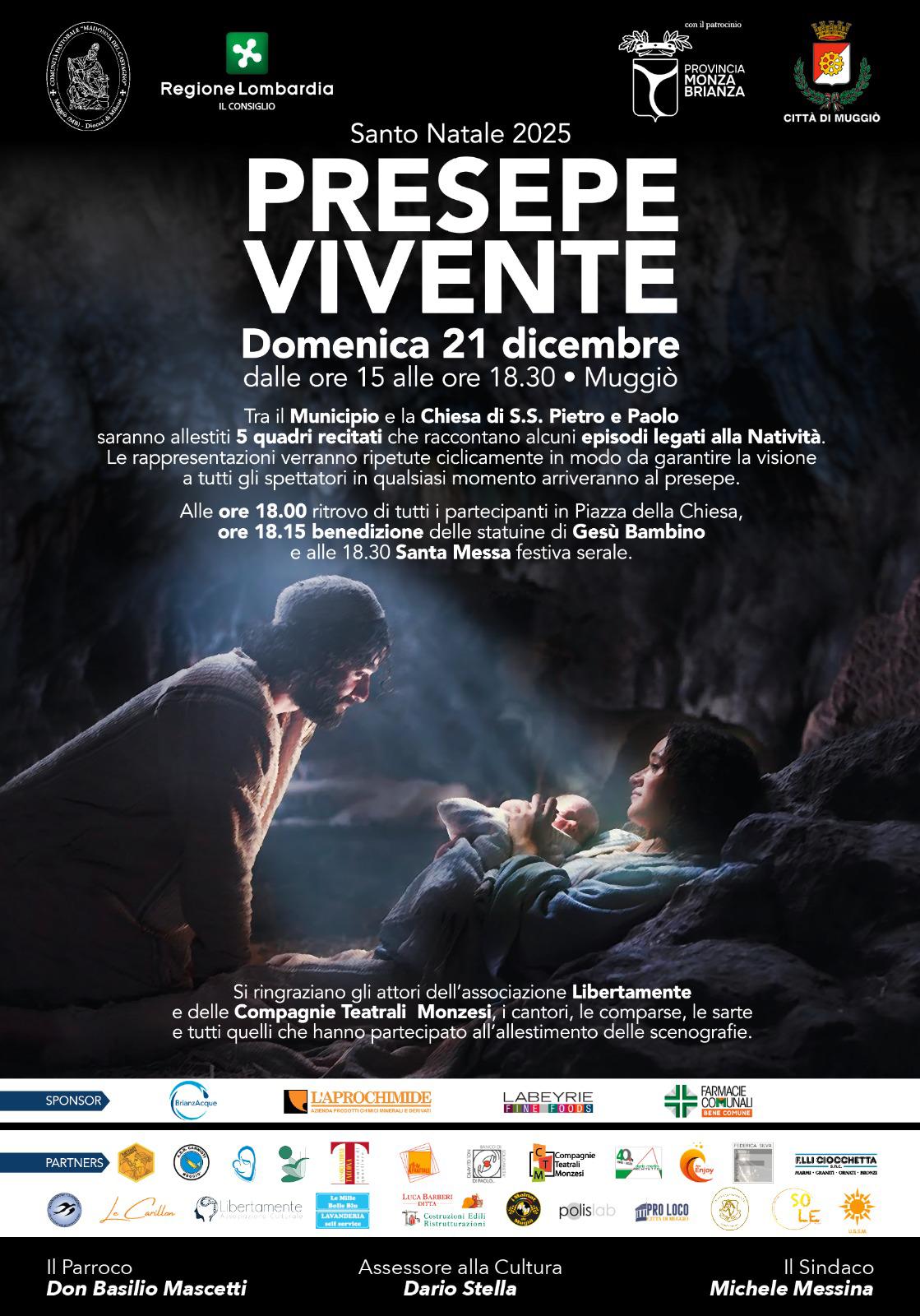 Il Comune di Muggiò e la Comunità Pastorale Madonna del Castagno presentano ufficialmente il nuovo presepe vivente, un grande evento cittadino patrocinato da Regione Lombardia – Il Consiglio e dalla Provincia di Monza e della Brianza.