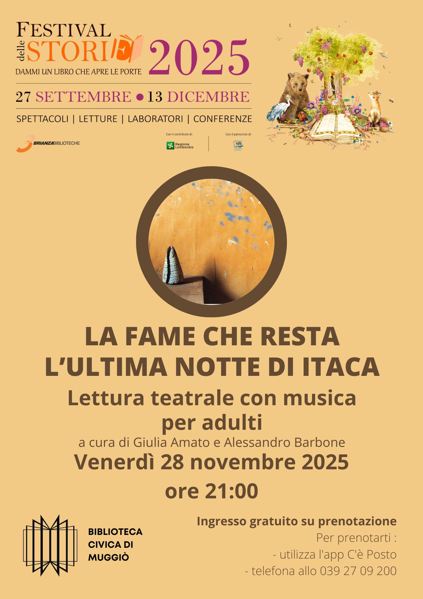 Tutti gli eventi del Festival delle Storie sono gratuiti, ma è obbligatoria la prenotazione. È possibile prenotare i singoli eventi utilizzando l'app C'è Posto o contattando le biblioteche. Scarica l'app C'è posto da Play Store o App Store o prenota cliccando qui.